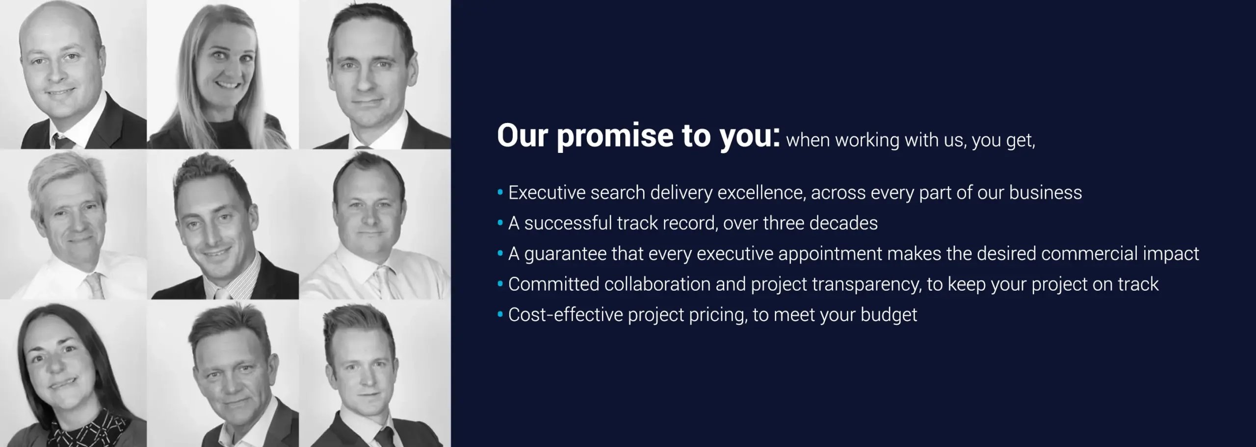 Of our executive search assignments reach offer stage within 6 weeks. 95% are successfully completed.