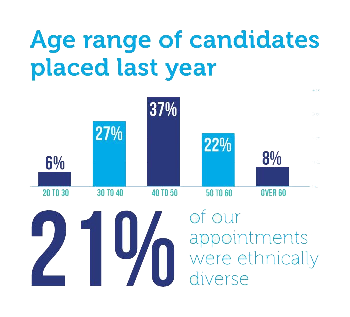 More fundamentally, we also look at under-represented communities at a macro, national level to determine which senior individuals would be appropriate for future assignments. We maintain a carefully sourced active database of senior executives and non-executives from different under-presented groups. Included in this list are substantial numbers of people from a female, disabled or BME background already operating at senior management level.